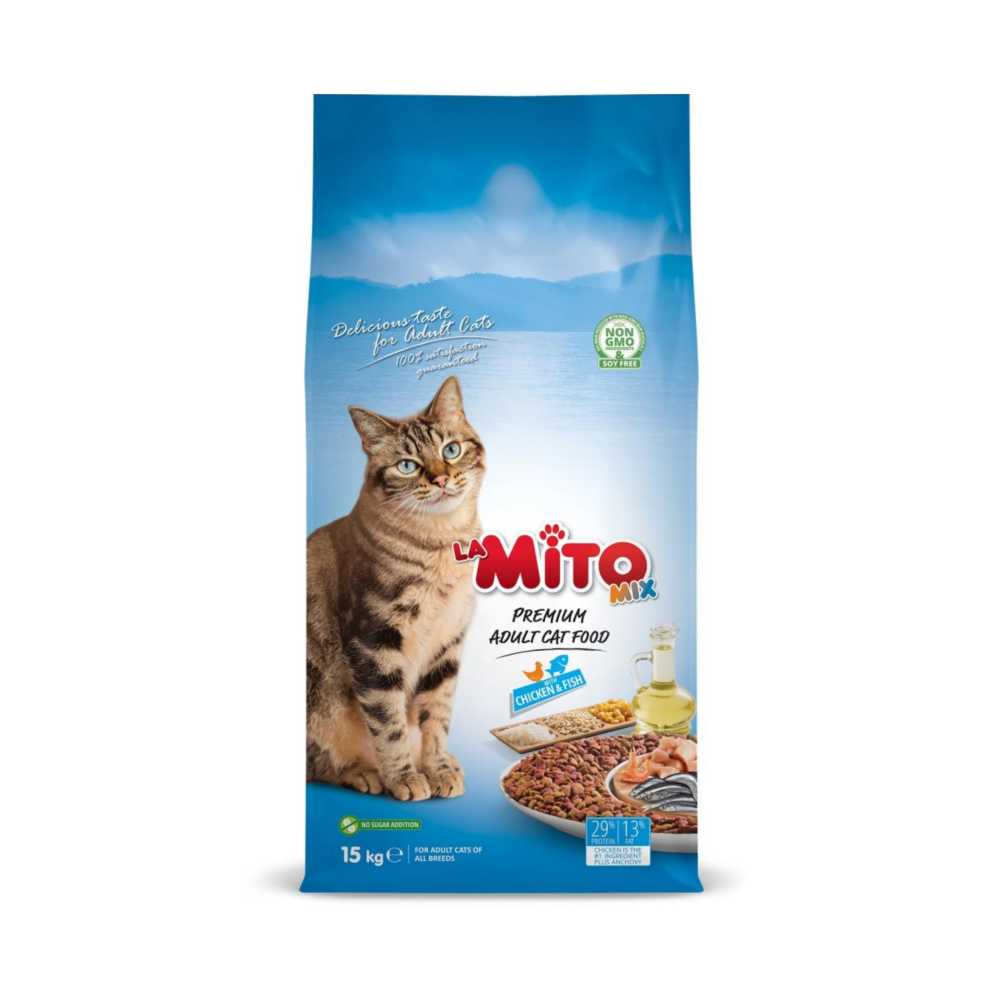 المزيدلاميتو طعام جاف للقطط بنكهة الدجاج و السمك