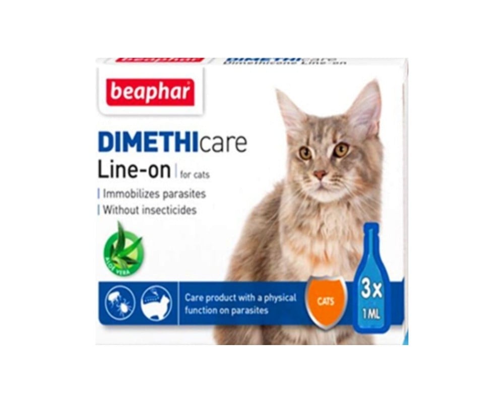 Beaphar Dimethicare Line-On هو منتج للعناية بالقطط التي لا يقل عمرها عن 12 أسبوعًا.