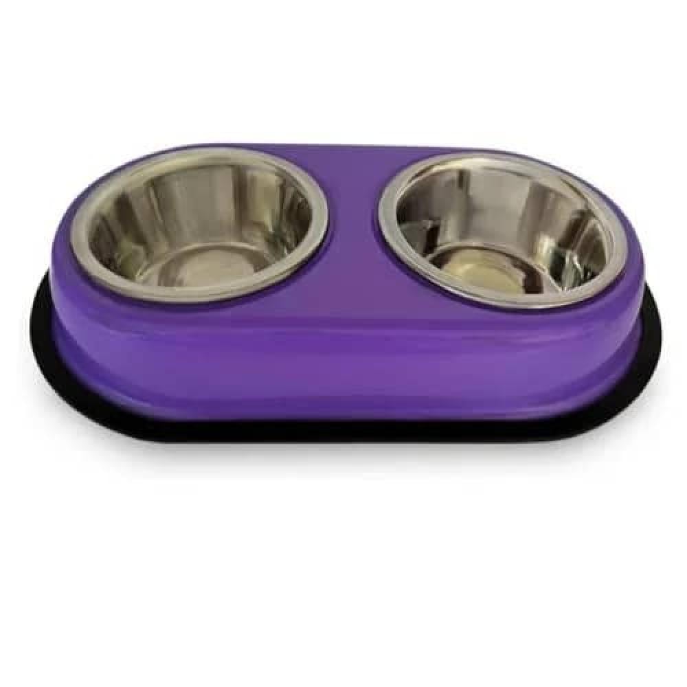 صحن ستانلس ستيل مزدوج مع قاعدة مانعة للانزلاق للحيوانات الأليفة من بيت اند مور